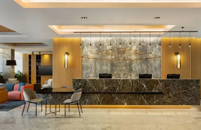 Ascari Furniture and Associates took on the responsibility for the turn-key interior production and supply, successfully translating the aesthetical vision into reality.We manufactured all furniture and decoration items, from the essential pieces in the hotel rooms (beds, bases, headboards, wardrobes, nightstands, and TV units) to the general public areas, which included the striking wood paneling for the lobby, restaurant, and halls, as well as the reception desk and the restaurant bar. Throughout this comprehensive project, where cultural sensitivity met aesthetic excellence, the Ascari team upheld the highest quality standards.